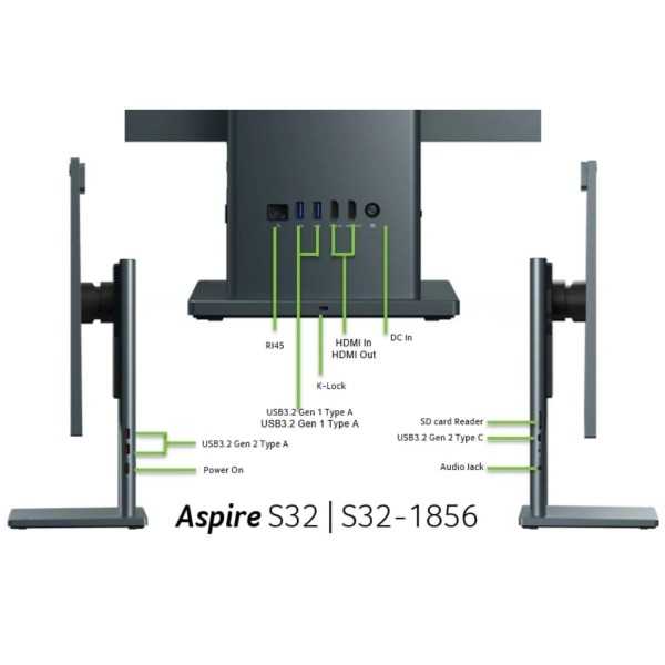 Découvrez l'All in One Acer Aspire S32-1856, avec un processeur Intel Core i7-1360P, 16 Go de RAM DDR4 et un SSD de 1 To. Son écran de 31.5" QHD IPS sans bordure offre une expérience visuelle immersive et fluide, idéale pour le travail et le divertissement.