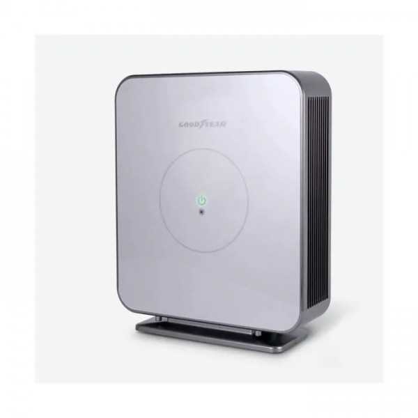 Purificateur d'air électrique 11W Goodyear. 6 niveaux de filtration. Filtre HEPA. Surface de travail 48m². Silencieux. Télécommande. 4 vitesses variables. Dimensions : 430 x 127 x 490 mm. Poids : 5 kg.