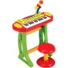 Clavier électronique 31 touches avec 2 sonorités d’instrument, 8 rythmes d’accompagnement, 15 morceaux de démonstration, micro intégré et fonction karaoké. Livré avec son siège. Dimensions : 32 x 54 x 33 cm.